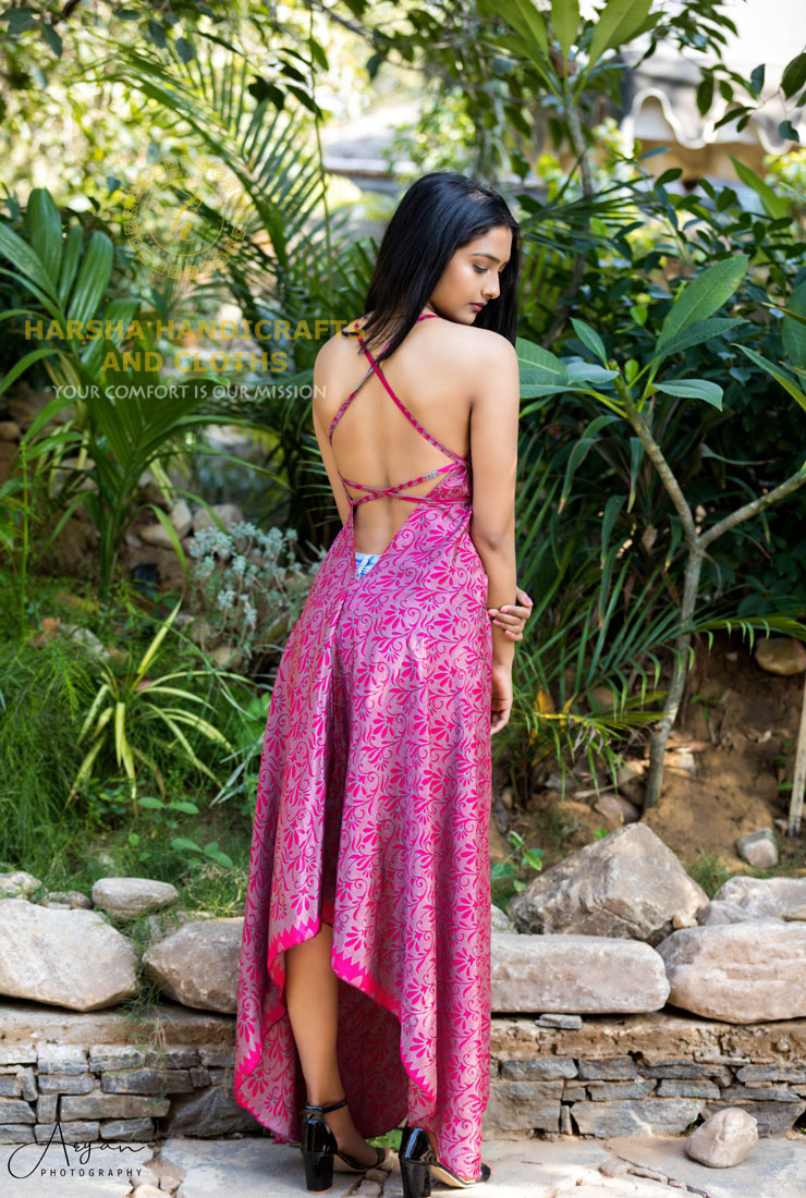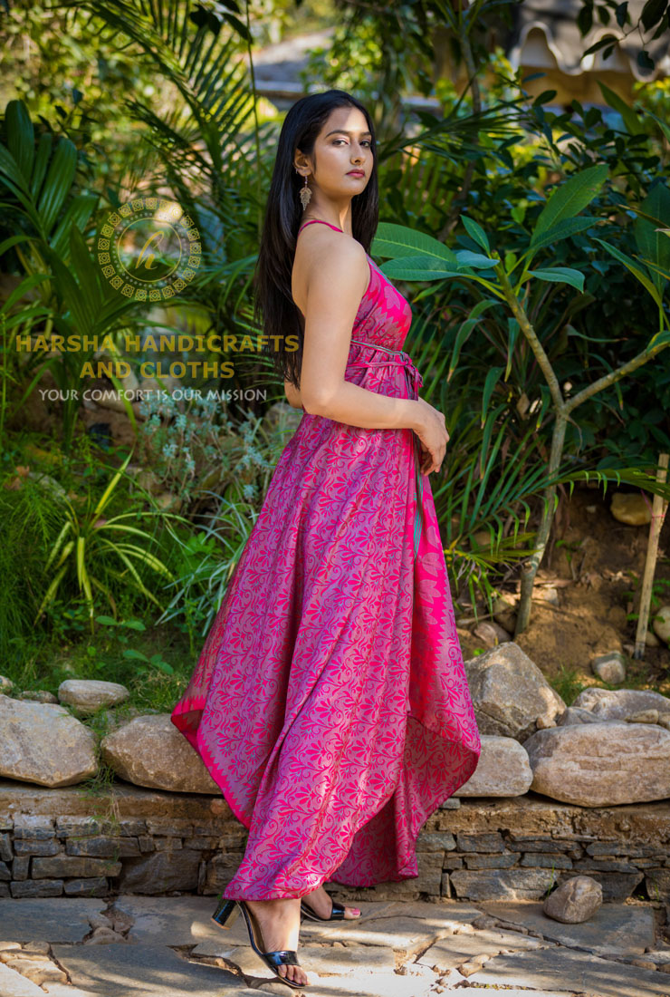 Long Scarf Dress made in Silk-Polyester recycled/used Saree fabric