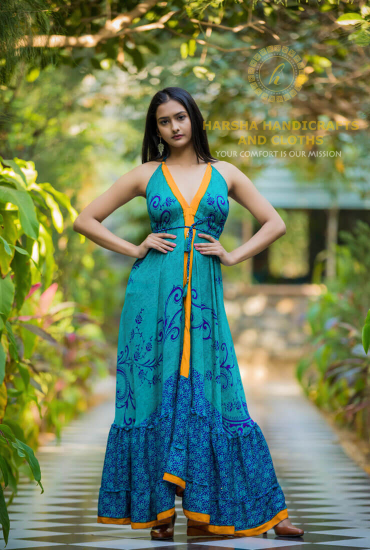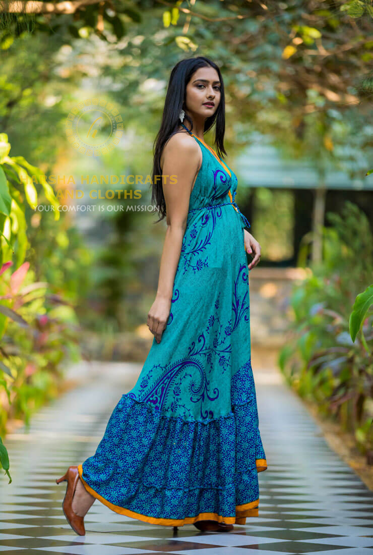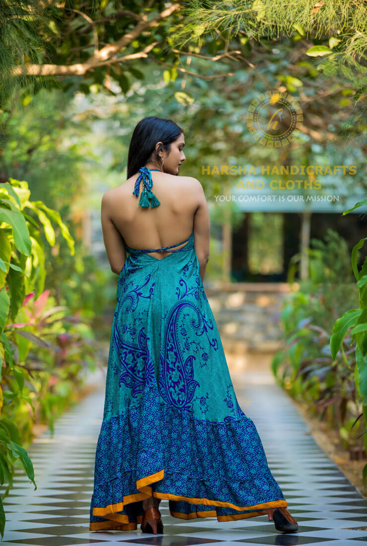 Scarf Dress with Frill made in Recycled/used Saree fabric