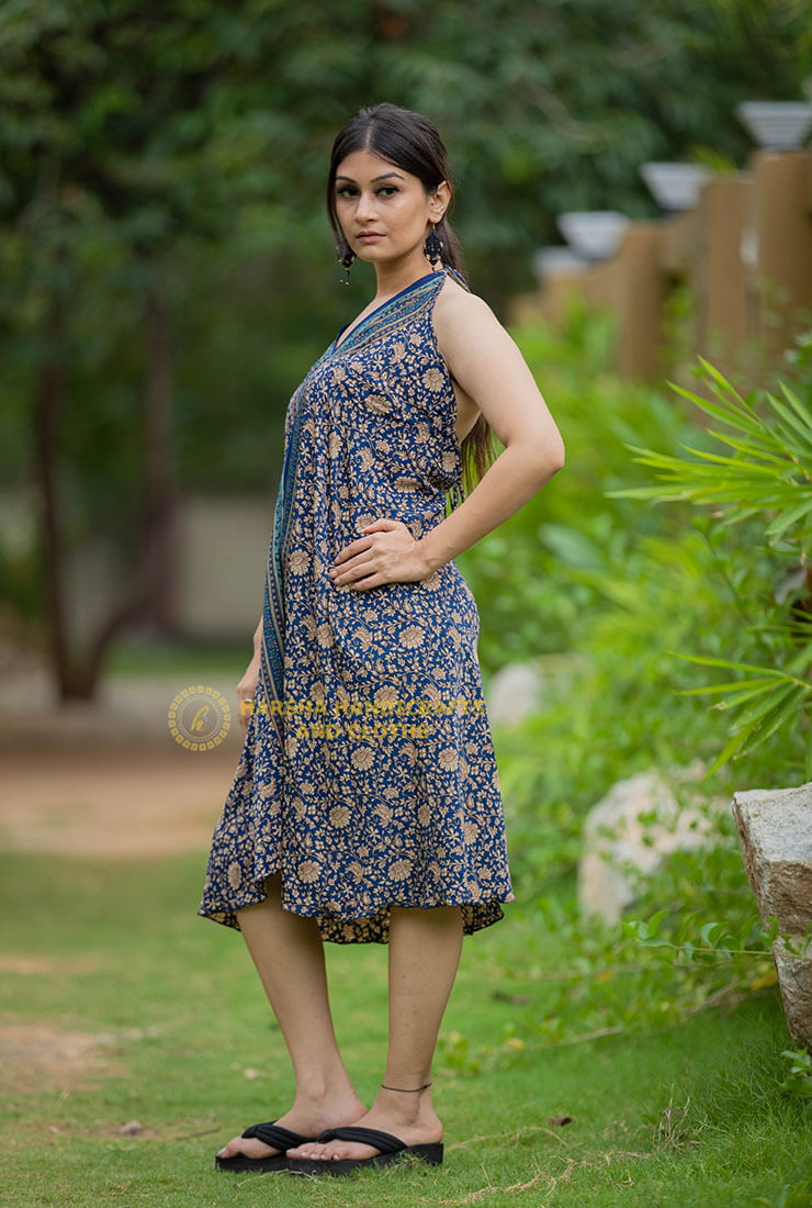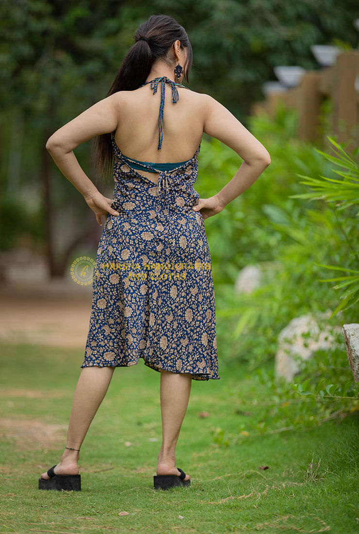 Short scarf dress made in Silk-Polyester recycled/used Saree fabric